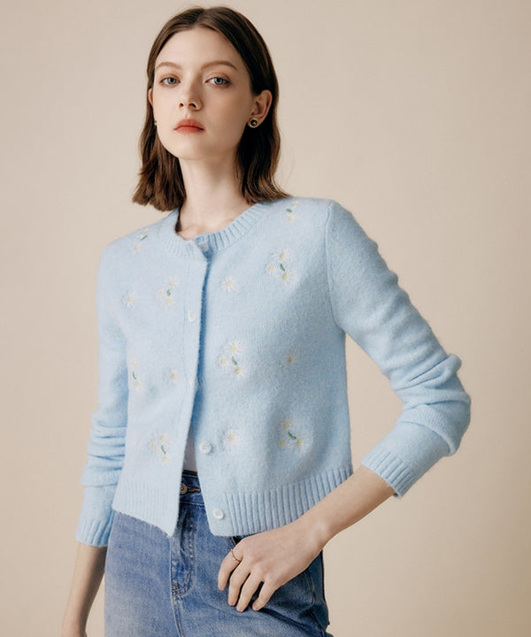 プリントデザインではなく刺繡で施されたデイジー柄がかわいらしい1枚。素材感と刺繍デザインが相まって温かみのある印象に。ショート丈なので合わせるボトムスを選ばないのも嬉しいポイント。