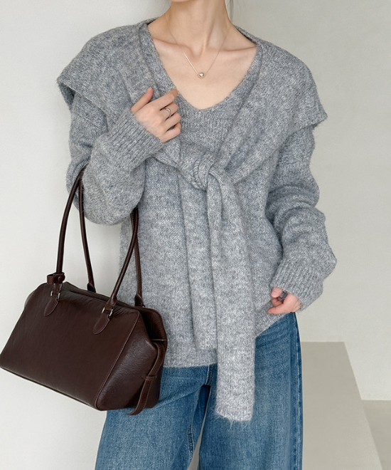 これだけでレイヤードスタイルが完成 ニットトップス&ショールセット