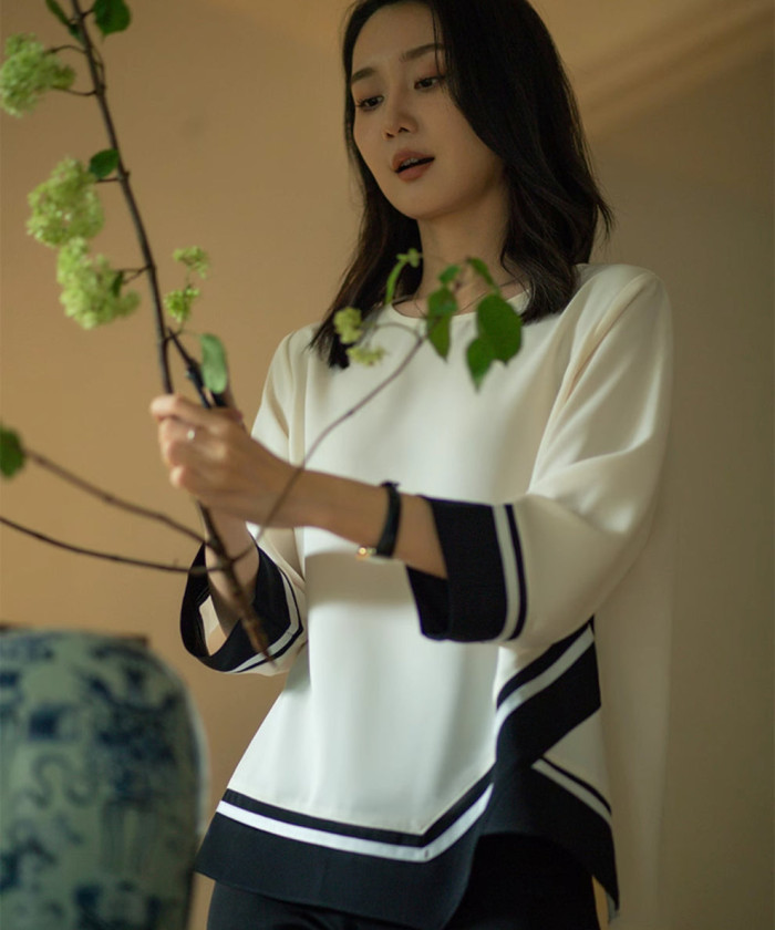 ふんわりとしたシフォン素材が軽やかに揺れ、優しい印象を与えるプルオーバー。コントラストカラーの配色が全体を引き締め、甘さの中にほどよいモード感を添えます。シンプルなボトムスと合わせるだけで、上品かつ抜け感のあるコーディネートに。