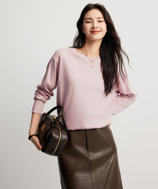 小さいお子さんのいるママさんはもちろん、アウトドアの方にも嬉しい様々なシーンで着用のできるシンプルなTシャツ。シンプルだからこそ、色選びは非常に重要で清潔感と女性らしさのあるピンクやラベンダーカラーを選ぶと、きちんとシーンでもラフなシーンでも着回しをすることができるのです。