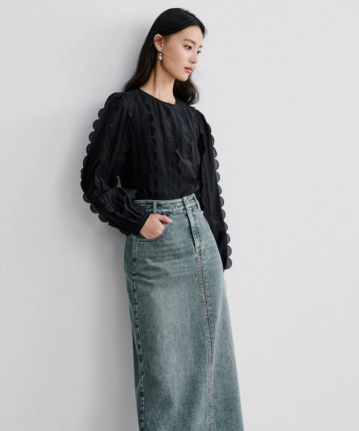 ブラックカラー×シフォン素材で大人な甘辛ミックスのブラウス