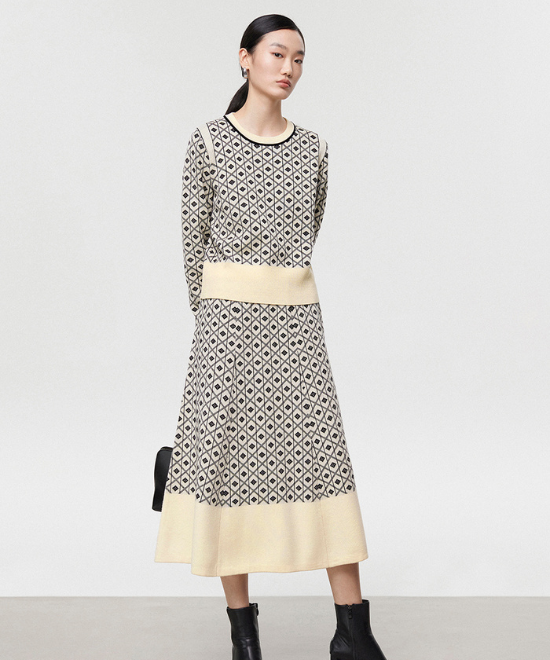 秋冬コーデに退屈を感じたら、プリントで遊び心をプラスして。控えめながら印象に残る柄で、周りと差がつくスタイルに。セットアップだから着るだけでサマになり、上下を別々に着れば着回し力も抜群!