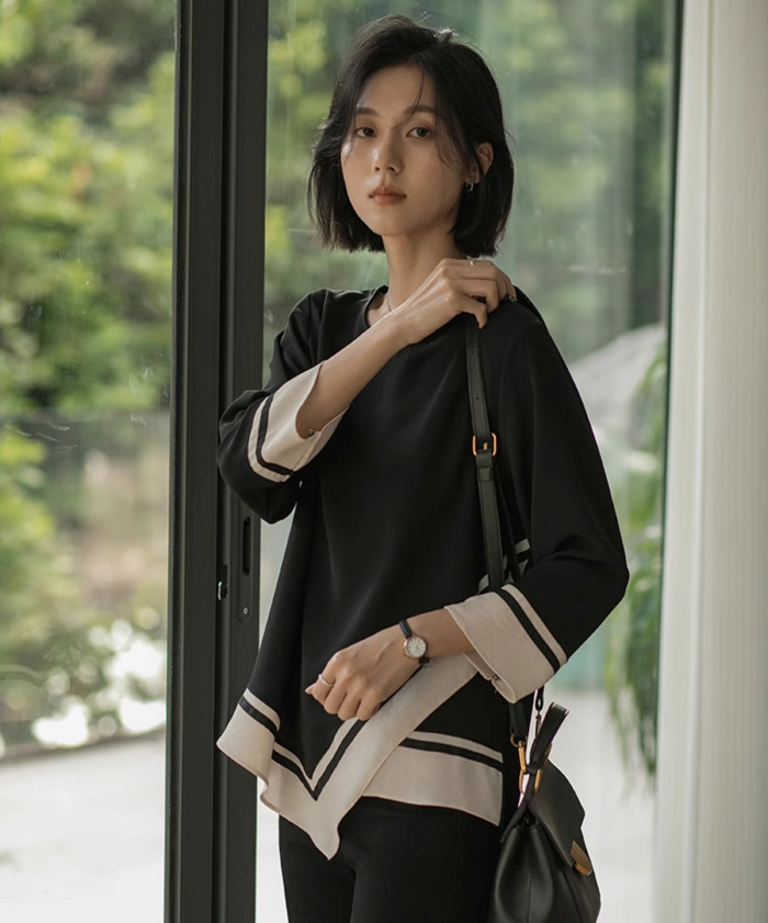 アシンメトリーデザインが周りと少し差をつけてくれるブラウス