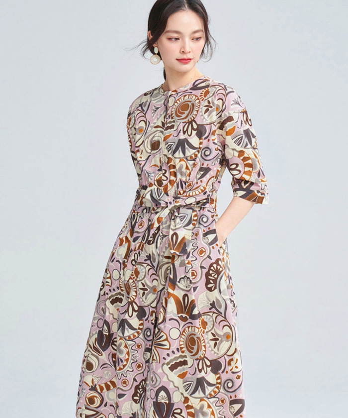 動きのあるシルエットで魅せるプリントシャツワンピース