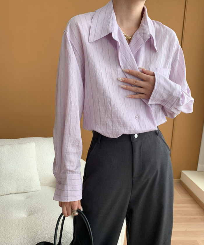 【ライトパープル】大人っぽいのに明るい色味が軽やかなシャツ