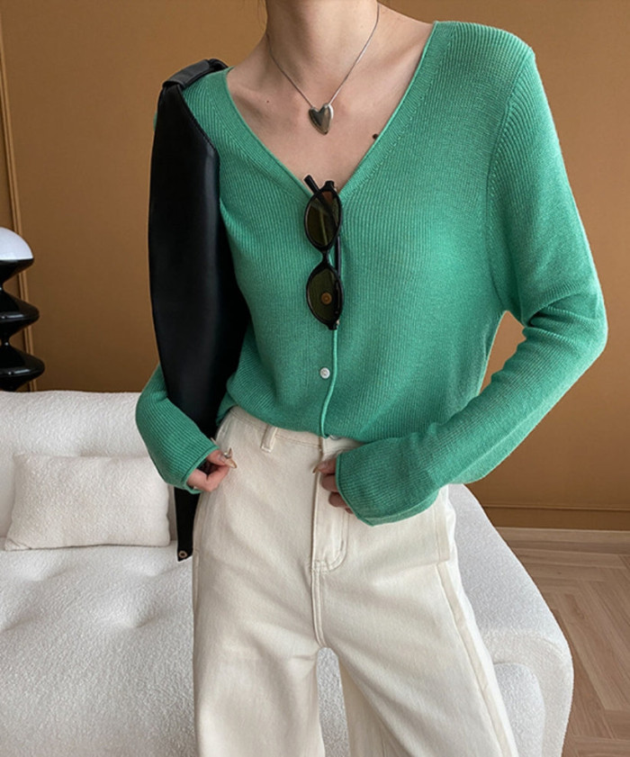 【ライトグリーン】シンプルミニマムなデザインが嬉しいカーディガン