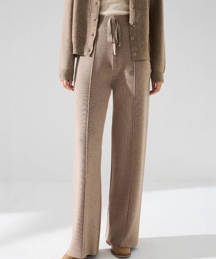 ニットパンツは楽だけどカジュアルに見えやすい…そんなイメージを覆す、大人向けの1本。落ち感のある素材が脚をまっすぐ見せ、ゆったりしているのに上品。公園からショッピングモールまで幅広く使え、冬のママコーデの頼れる味方です。