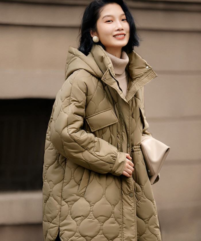 しっかり暖かいホワイトグースダウンを使用し、真冬の旅行でも安心のロング丈アウター。軽量で長時間の移動もストレスがなく、スタンドカラーが首元まで包み込んで防寒性を高めてくれます。着膨れしにくいスマートなシルエットなので、観光地での写真にもすっきり映えるのが嬉しいポイント。カジュアルからきれいめまで、どんな旅コーデにも合わせやすい万能ダウンです。