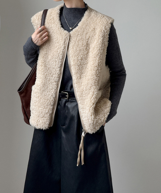 ボア素材のジップアップベスト
