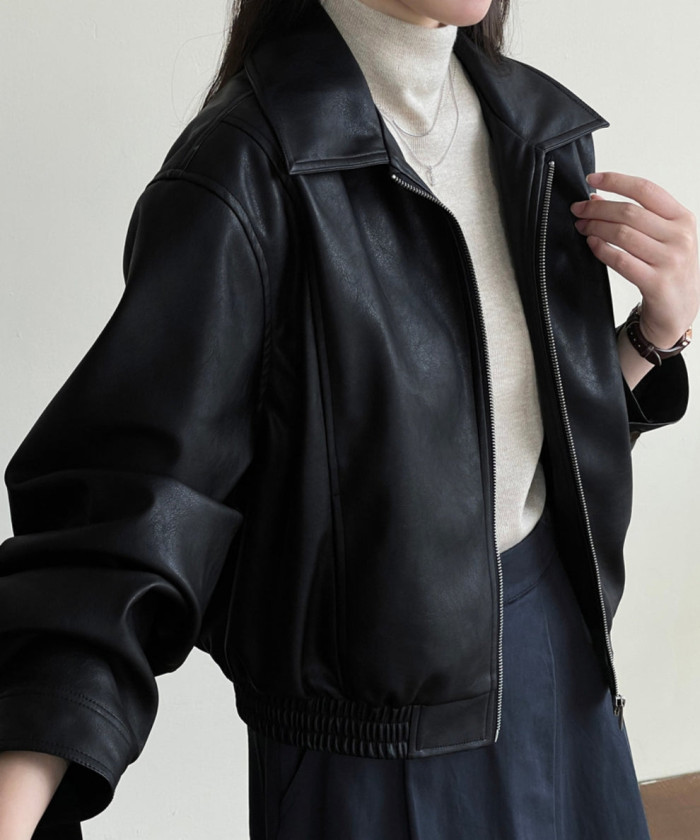 ショート丈のレザージャケットでコンパクトに