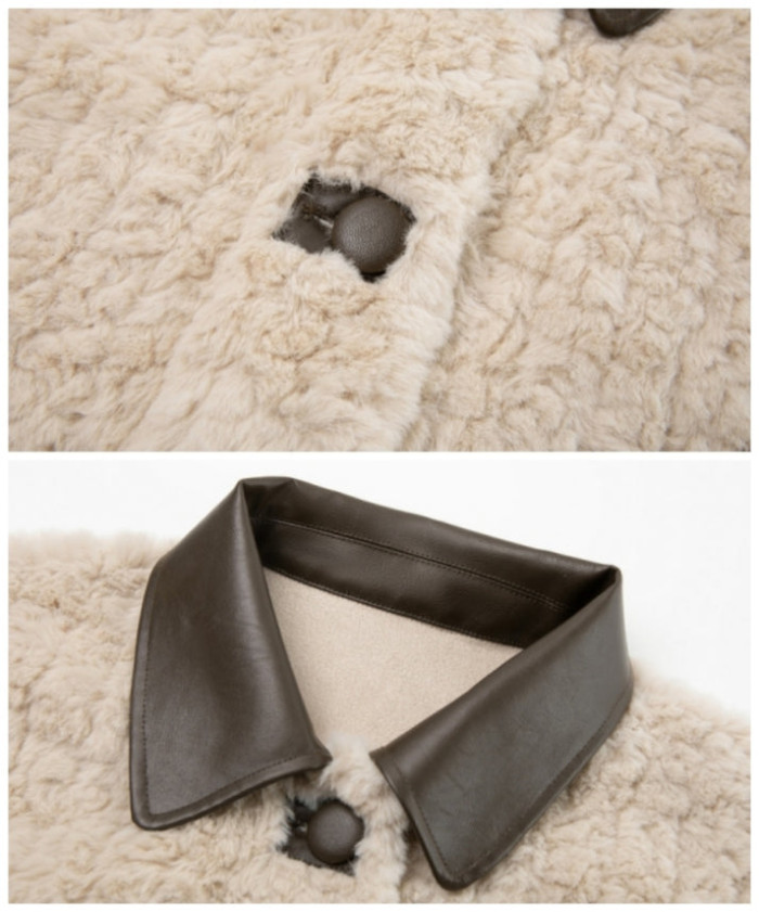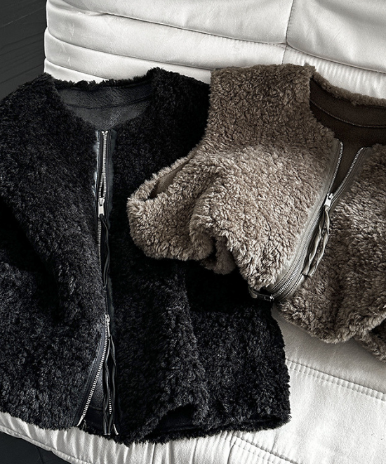 ふわふわファーの全面使いでほっこりしがちなジャケットの可愛らしさを、うまくレザーのクールさが引き算しています。可愛すぎない、大人が着たいファージャケットです。