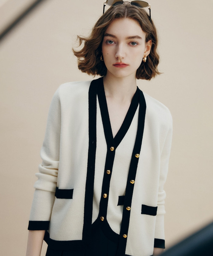 フェミニンに見せたいけれど甘すぎるのは苦手…。そんな大人の女性にぴったりなのが、パイピングデザインのカーディガン。淡い色合いで優しい印象をまといながら、Vネックとパイピングのコントラストで品の良さもプラス。シンプルなパンツやスカートに羽織るだけで、「きちんと感のあるフェミニンスタイル」 が完成します。