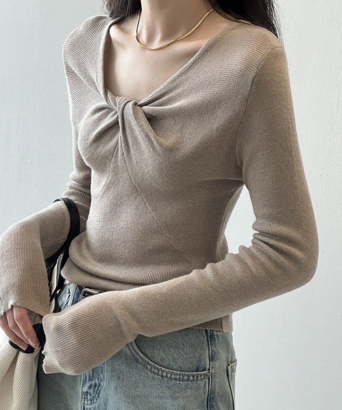 無地ニットの気軽さはそのままに、胸元のノットデザインが洗練された表情を見せてくれる一枚。甘すぎず、キレイめすぎず、大人の余裕を纏える絶妙なバランスが魅力です。「ちょっとだけいつもより上品に見せたい」そんな日に選びたい、長く付き合いたくなる名品ニット。