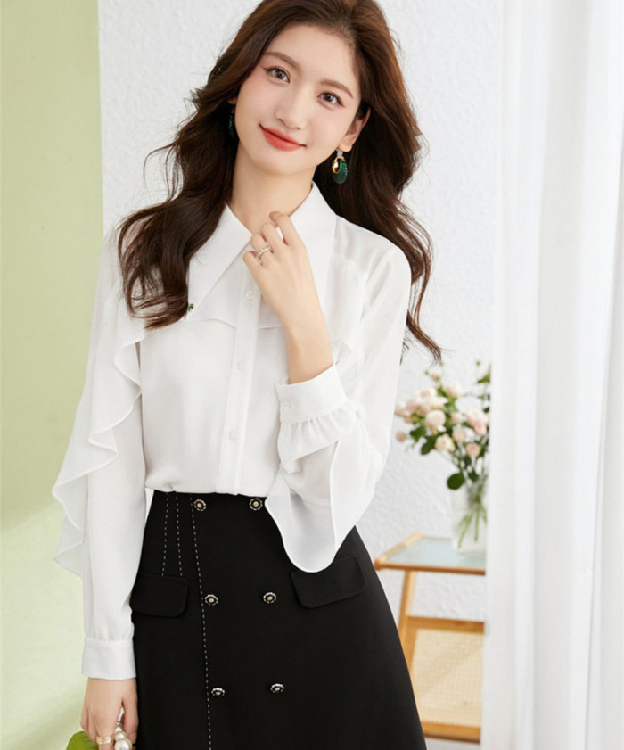 純真無垢なホワイトカラー×フリルが可愛い。フリルブラウス