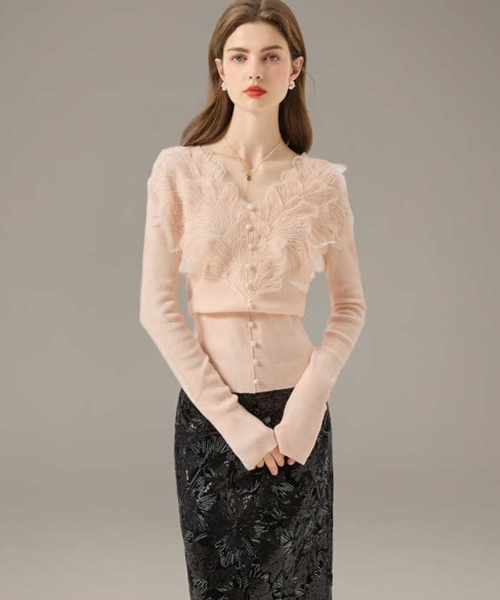 ニット×レースの異素材のおしゃれさにきゅん。レースカーデ