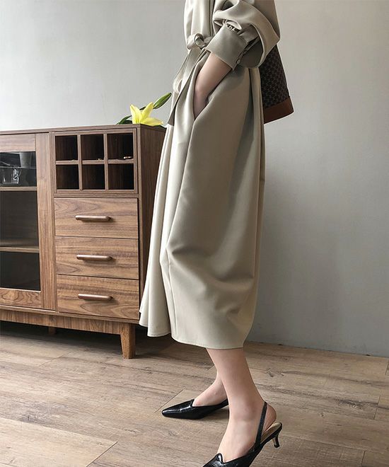 やわらかなリボンディテールとロング丈が、フェミニンな印象を引き立てる一枚。シンプルな切り替えデザインで、甘さを抑えつつきれいめに仕上げられています。