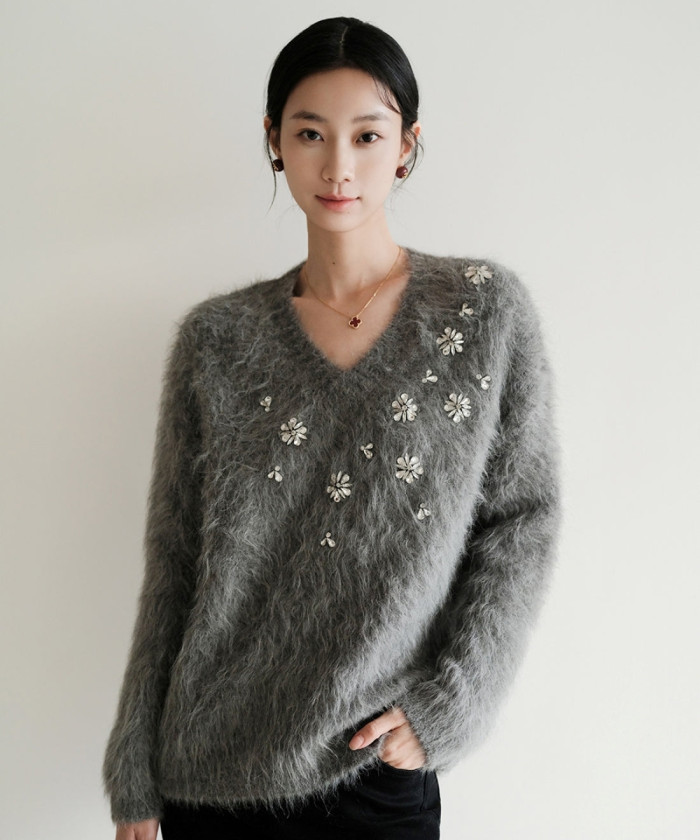 フラワービジュー×シャギーニットトップス