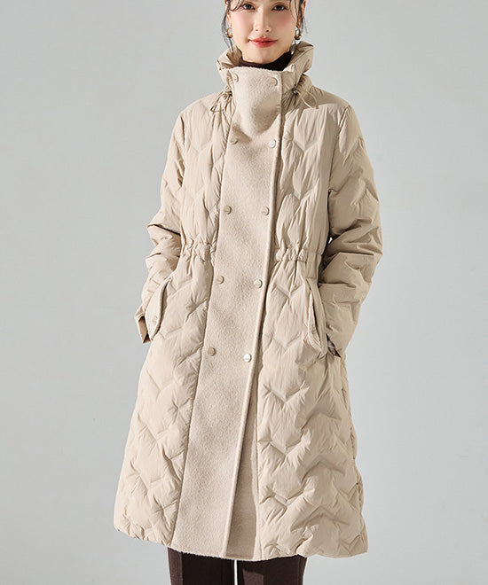 前立てを別布仕立てにしたラグジュアリーなロングダウンコート。軽くて暖かなダウンコートは秋冬の旅行には必須アイテム!衿を大きく開けばドラマティックな首元に、閉じてスタンドカラーにすれば寒さを凌ぐ実用的なコートに。首回りはドロストで絞れるので、冷気の入り込みを防ぎます。