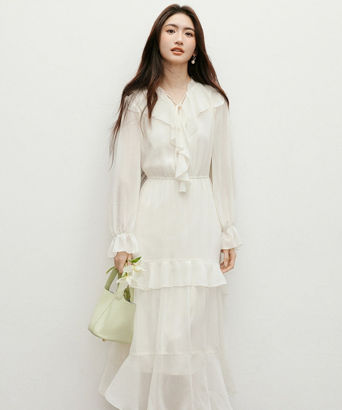 冬の白を可憐に楽しむミルキーフレアワンピース