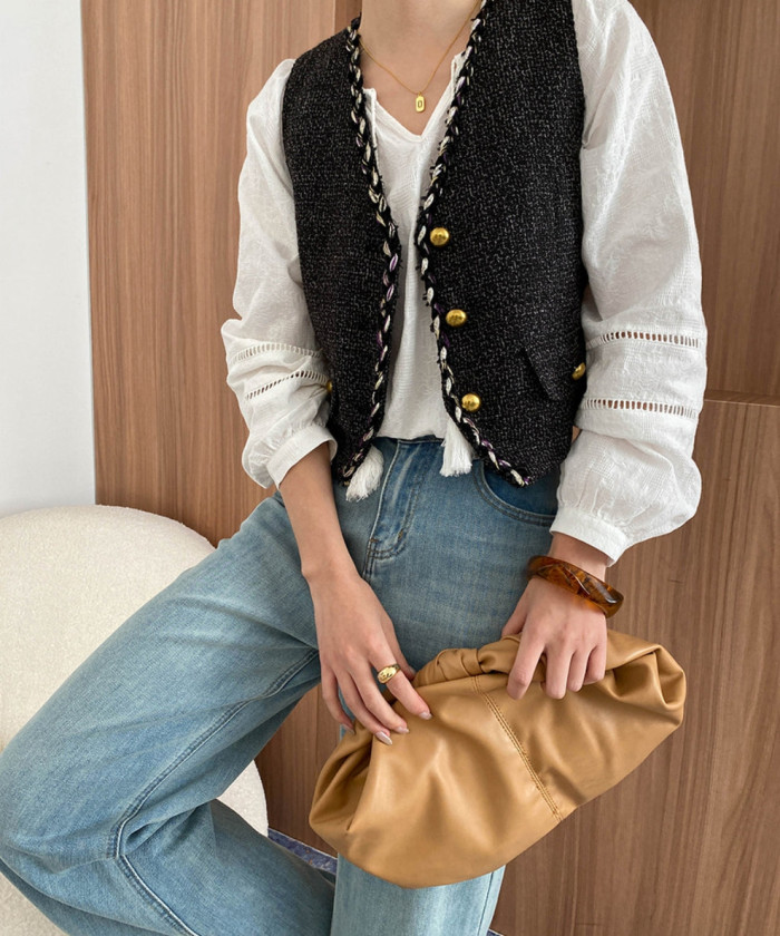 小粒の可愛さが効いたツイードベストでクラシカルに