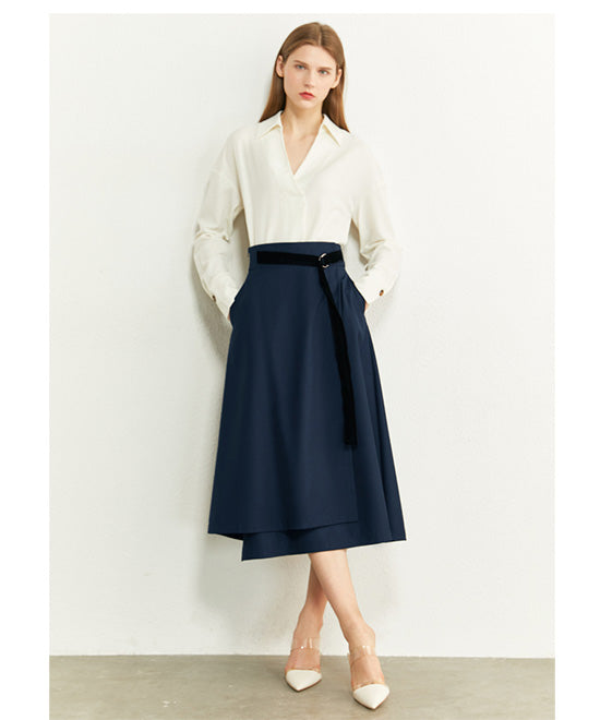 巻きスカート風のデザインと、変形したアシンメトリーなヘムラインが特徴的なAラインスカート。トレンドのミモレ丈で、トレンド感のあるこなれた雰囲気を演出してくれます。冬に身に着けたい高級感あるベルベット生地を、深みのある色味で取り入れられるのでいいとこどりなアイテムなのです。