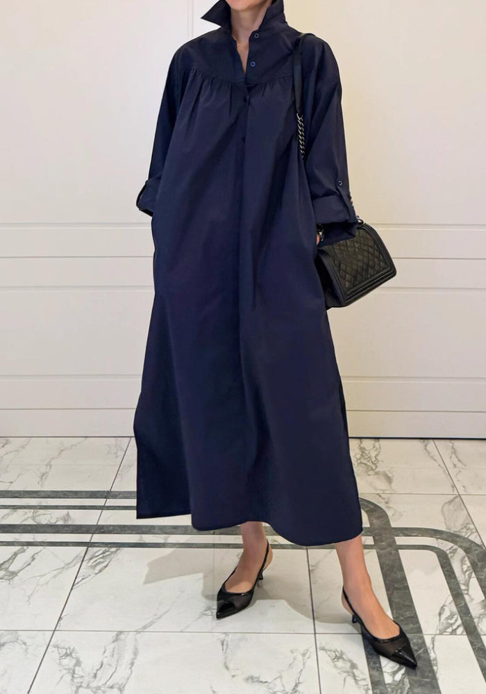 体型が気になる方にも嬉しい、こなれ感あるゆったりサイズのシャツワンピース。