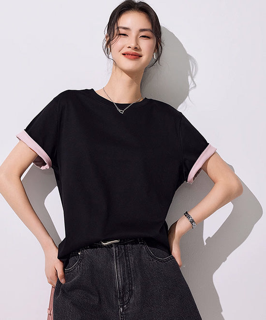 さりげない配色デザインで脱・無難「袖アクセントTシャツ」