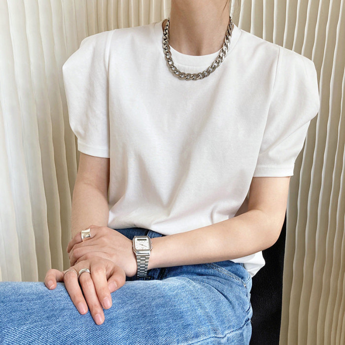 ワンポイントで大人可愛く「胸元刺繍Tシャツ」