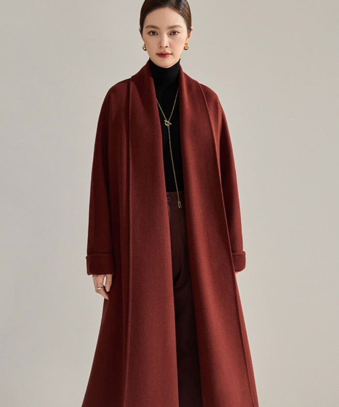 冬の行事には“見た目がすっきりして暖かいコート”が必須。このコートは体を優しく包み込むシルエットで、品のある大人の佇まいを演出します。バスローブ風のウエストマークが程よくフェミニンさをプラスし、ママとしての柔らかさと上品さを両立。ニット×黒パンツなどのシンプルコーデも格上げしてくれます。