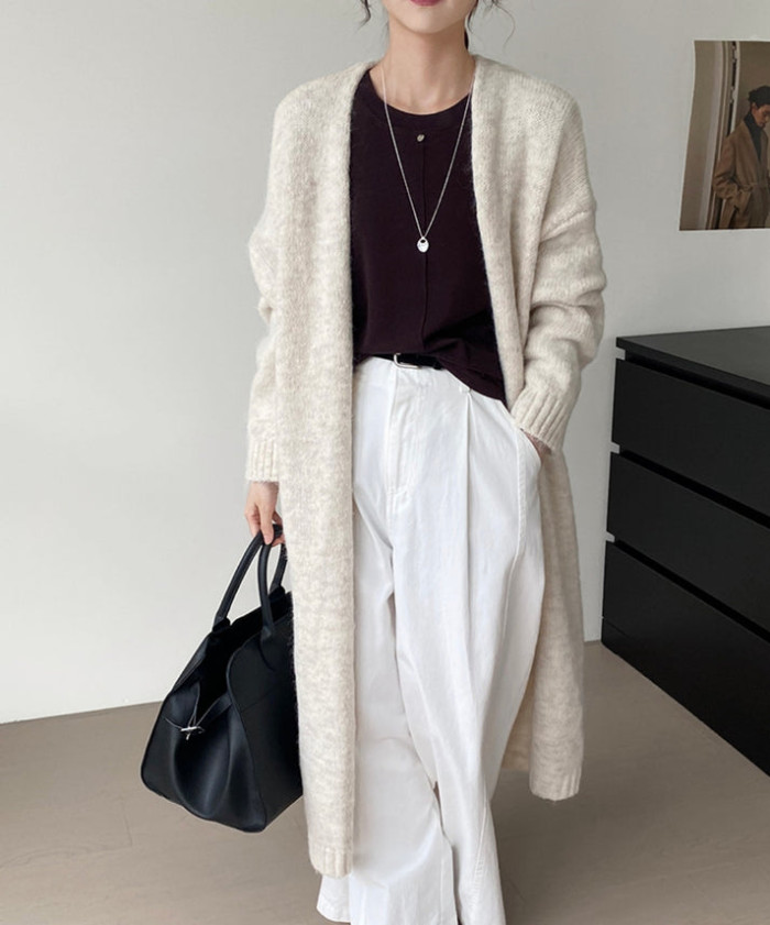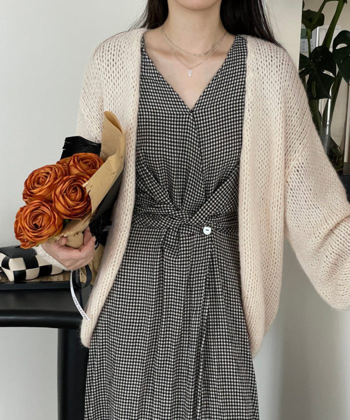 厚手でロング丈のコーディガンスタイル。杢ホワイトの優しい色味です。