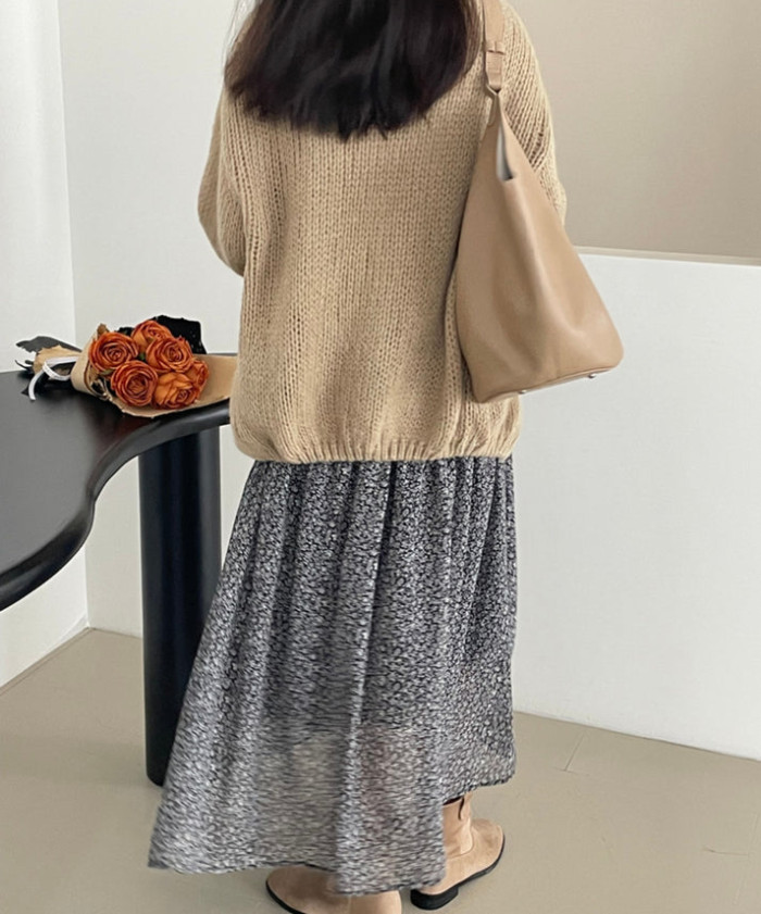 プリントスカートと合わせてフェミニンな着こなし。ブラックとも相性が良いので、シックなコーデも似合います。