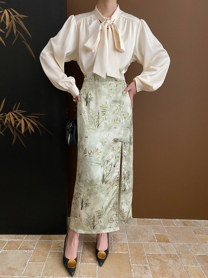 ドレープが綺麗に入り、立体感を持たせて上半身を覆ってくれる体型カバーにもなってくれるリボンタイブラウス。スウィーティーなイメージを持つリボンタイのディテールは、今季のトレンドにぴったりなのです。トップスが甘い分、ボトムスは大人っぽいものをチョイスするとバランスが取れますよ。