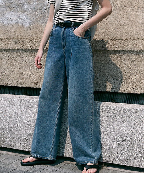 ストンと落ちるワイドなシルエットが魅力のデニムパンツは、カジュアルコーデの定番アイテム。レッグラインを拾わないゆとりのある形で、抜け感のあるリラックススタイルを叶えます。シンプルなのに存在感があり、どんなトップスともバランスよく決まる万能な一本です。