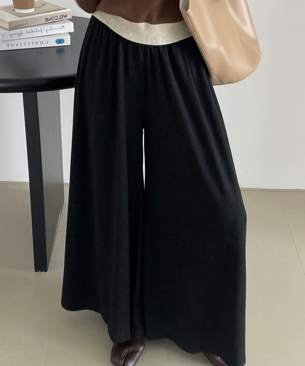 季節感をしっかり取り入れたい秋冬には、ゆったりとしたシルエットのニットパンツがおすすめ。柔らかな素材感でリラックスできるうえ、体型カバーも叶う優秀アイテムです。ブラックならすっきり見えして、カジュアルにもきれいめにもマッチ。大人の余裕を感じさせる旬のスタイルに仕上がります。