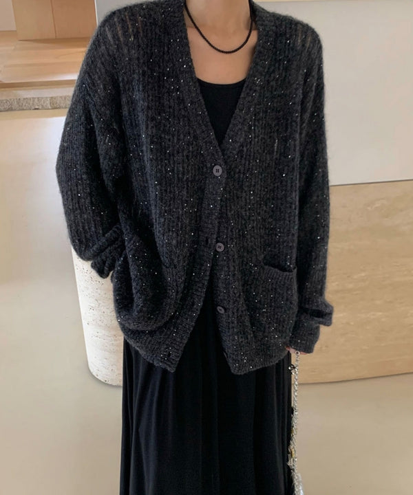 スパンコールがあしらわれたゆるっとルーズなカーディガンは、ダークトーンでもキラキラ感が華やかさをプラス。ゆったりシルエットでレイヤードもしやすく、シンプルなインナーと合わせるだけで、大人のこなれ感あるスタイルが完成します。