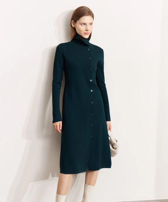フロントボタン付きのニットワンピースは、ボタンディティールがアウターのような印象をプラス。シンプルながらもどこか個性的なデザインで、1枚で存在感のあるコーデが完成します。カジュアルにもきれいめにも合わせやすい万能アイテムです。