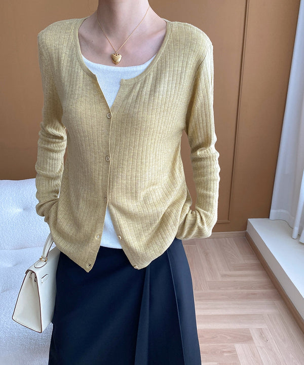 寒さが深まる季節、ふんわりとした色合いが恋しくなる頃。今季のトレンドカラーでもある柔らかなイエローは、40代の肌を明るく見せてくれる大人にうれしい色。細リブのニットカーディガンなら、優しさときちんと感を兼ね備え、いつものスタイルにも自然に取り入れられます。