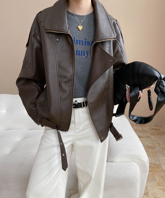 レザーのかっこよさはそのままに、ルーズなシルエットで今年らしさをしっかり楽しめる一枚。ツヤを抑えたマットな風合いが大人っぽく、モードに寄りすぎず普段着にも取り入れやすいのが嬉しいポイントです。ニットやスウェットの上にさっと羽織るだけでスタイル全体が洗練され、いつもの“無難コーデ”が見違えるほど新鮮に。