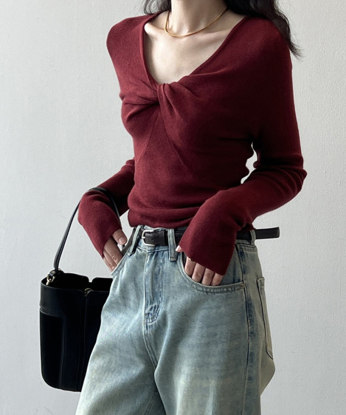 胸元の絞りデザインが特徴的で、アクセントにもなってくれておしゃれなこなれ感を演出することができるプルオーバー。薄手のニットのアイテムは、実は重ね着をするのに非常に適しており、こちらのアイテムも1枚で着ることは然り、重ね着をしても非常に映える1枚です。深みのあるレッドが美しいです、