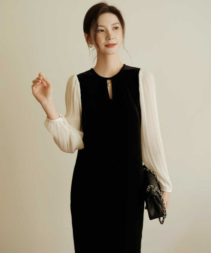華やぎと着心地を両立「プリーツスリーブベロアワンピース」