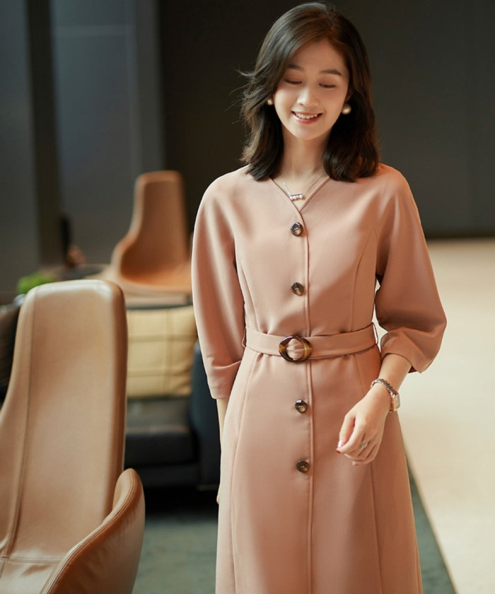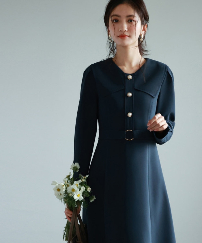 ウエストをすっきり締めるベルトデザインが魅力の一枚。体のラインがきれいに見え、フォーマルな場はもちろん、ちょっとした外出にも使える万能さがポイント。シンプルながら上品な存在感があり、アクセサリーを変えれば表情も自在です。