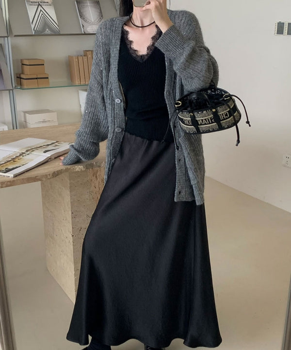 ゆるっとしたシルエットがこなれ感を演出するVネックのスパンコールニットカーディガン。ライトグレーならブラックコーデに羽織るだけで、程よい華やかさと明るさをプラスできます。カジュアルにもきれいめにも合わせやすく、オンオフ問わず活躍する冬の万能アイテムです。