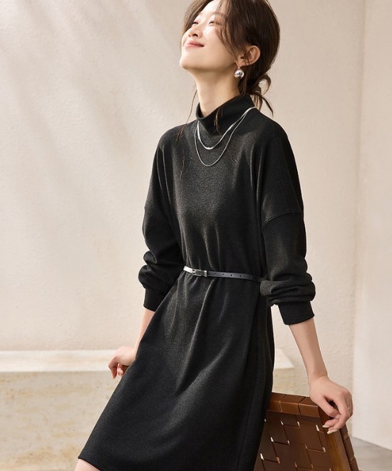 セミタートルネックニットワンピース