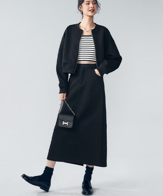 コスパ最強のショートジャケット×Iラインスカートのセットアップ。オールシーズン使える万能さで、着回し力は無限大。インナーを変えるだけで印象がガラリと変わり、新鮮さが続く“何度も着たい”優秀2ピースです。