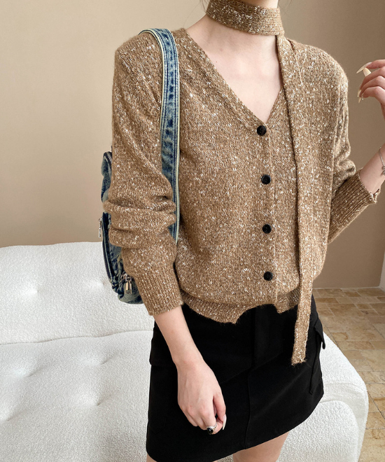 落ち着きとこなれ感を両立「Vネックミックスニットカーディガン」