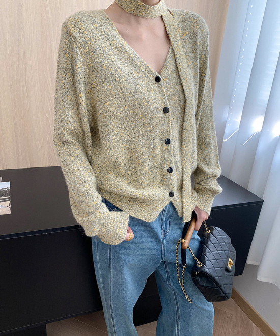 久々に会う旧友、歳上のママ友達、仕事仲間。どんな集まりでも好感度を得られるVネックニットカーディガンは、イベントシーズンに備えておけば安心。定番過ぎて物足りない、そんな悩みは色で解決。こちらはイエローのミックス糸を使い、華やかな仕上がりです。