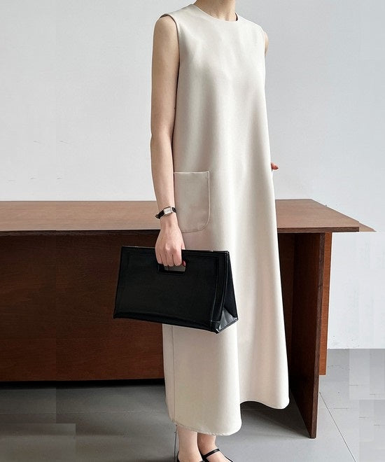 キャミワンピは下着選びが難しそう、着こなす自信がない、そんな人におすすめなのがベストワンピース。露出は少ないながらも端正なシルエットで品の良い佇まいに。羽織なしでも安心だから、大ぶりのネックレスをつけるなどアクセサリーを主役にしても素敵です。