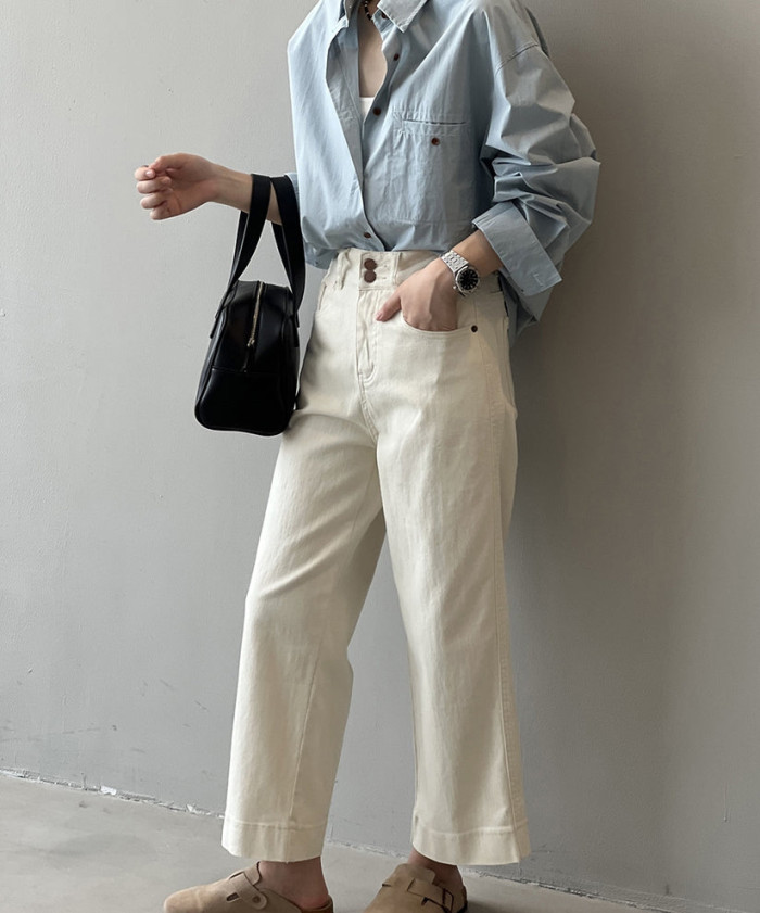 フレッシュなフェミニンさが嬉しい。パールボタンブラウス