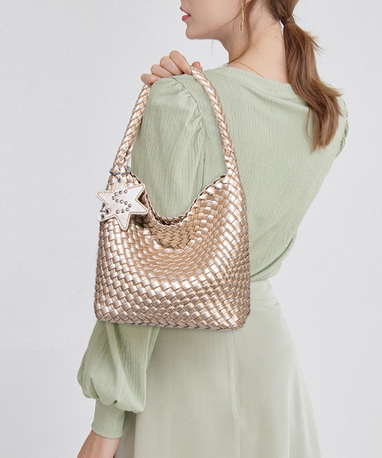 柔らかく光を反射する編み込みテクスチャーが、夜景に溶け込みながら存在感を放つ一品。手織りならではの奥行きのある表情で、シンプルな冬コーデもぐっと華やかに。上品さとこなれ感が両立し、デートにぴったりの大人可愛い雰囲気に仕上がります。
