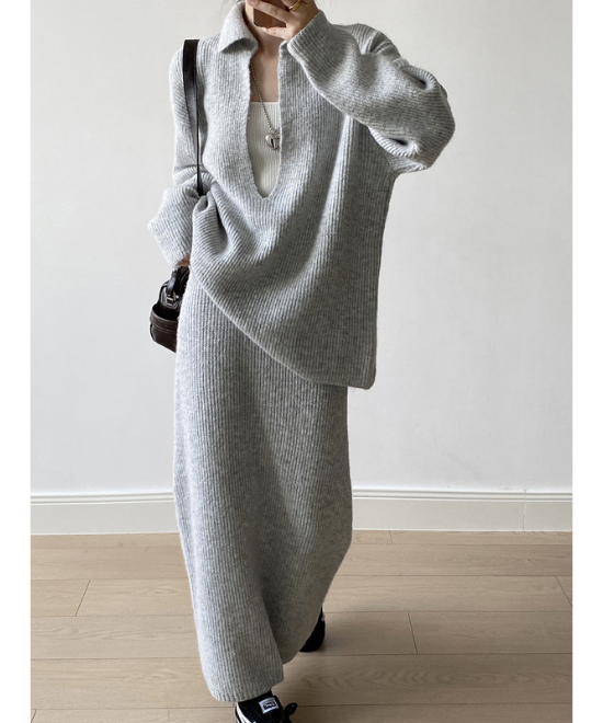 ワンピースに見えるセットアップを選ぶのもアリ。こちらはトップスが長めに造られ、お腹や腰を冷えから守ります。ルーズなサイズ感がゆるっとかわいく、でも上下揃いで着ることでラフになり過ぎず、こなれて見えるのも嬉しい。インナーはハイネックでもお洒落です。